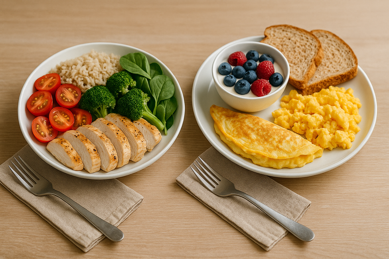 - 예시: 현미밥 + 닭가슴살 + 달걀 + 견과류